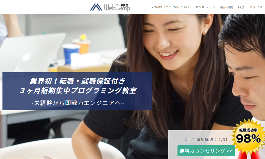 短期間で高いエンジニアスキルを身につけることができ、転職を保証してくれるWebCampPROを利用しない手はありません。