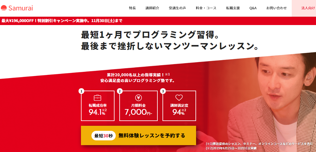 侍エンジニア塾←マンツーマン指導のパイオニア!